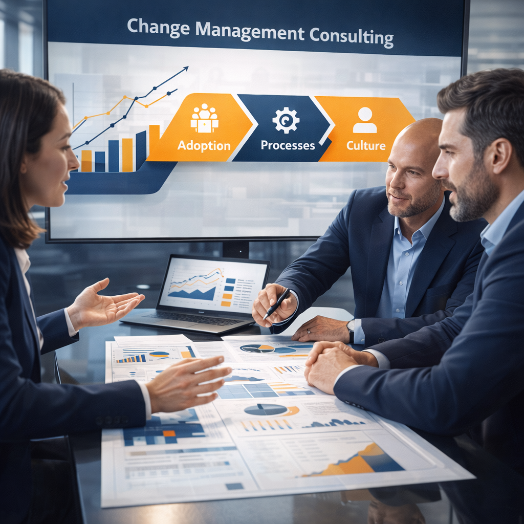 Descubre cómo podemos ayudarte a impulsar la transformación de tu organización: ofrecemos servicios especializados en adopción tecnológica, gestión del cambio y optimización de procesos y mucho más, acompañando a los equipos para que saquen el máximo partido a herramientas y soluciones corporativas. Nuestro enfoque combina estrategia, metodología, personas y tecnología para asegurar una adopción real, sostenible y alineada con los objetivos de negocio.
